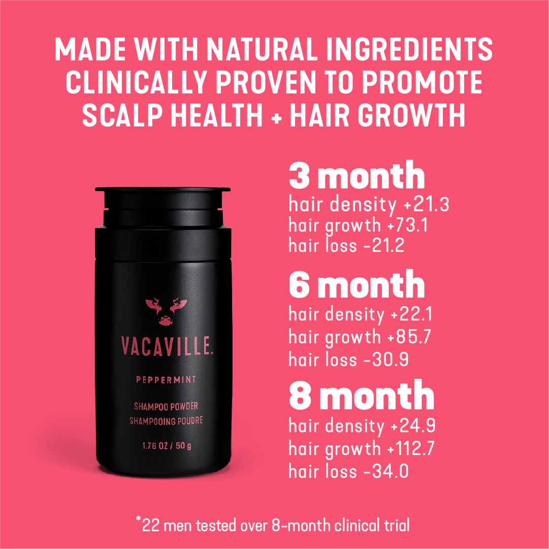 Our premium powder-to-lather shampoo delivers wash-and-go simplicity, transforming into a rich, creamy lather the moment it meets water. Specially formulated to target hair loss and provide scalp care, this unique shampoo combines clinically-proven ingredients to help promote a healthy scalp and support natural hair regrowth.